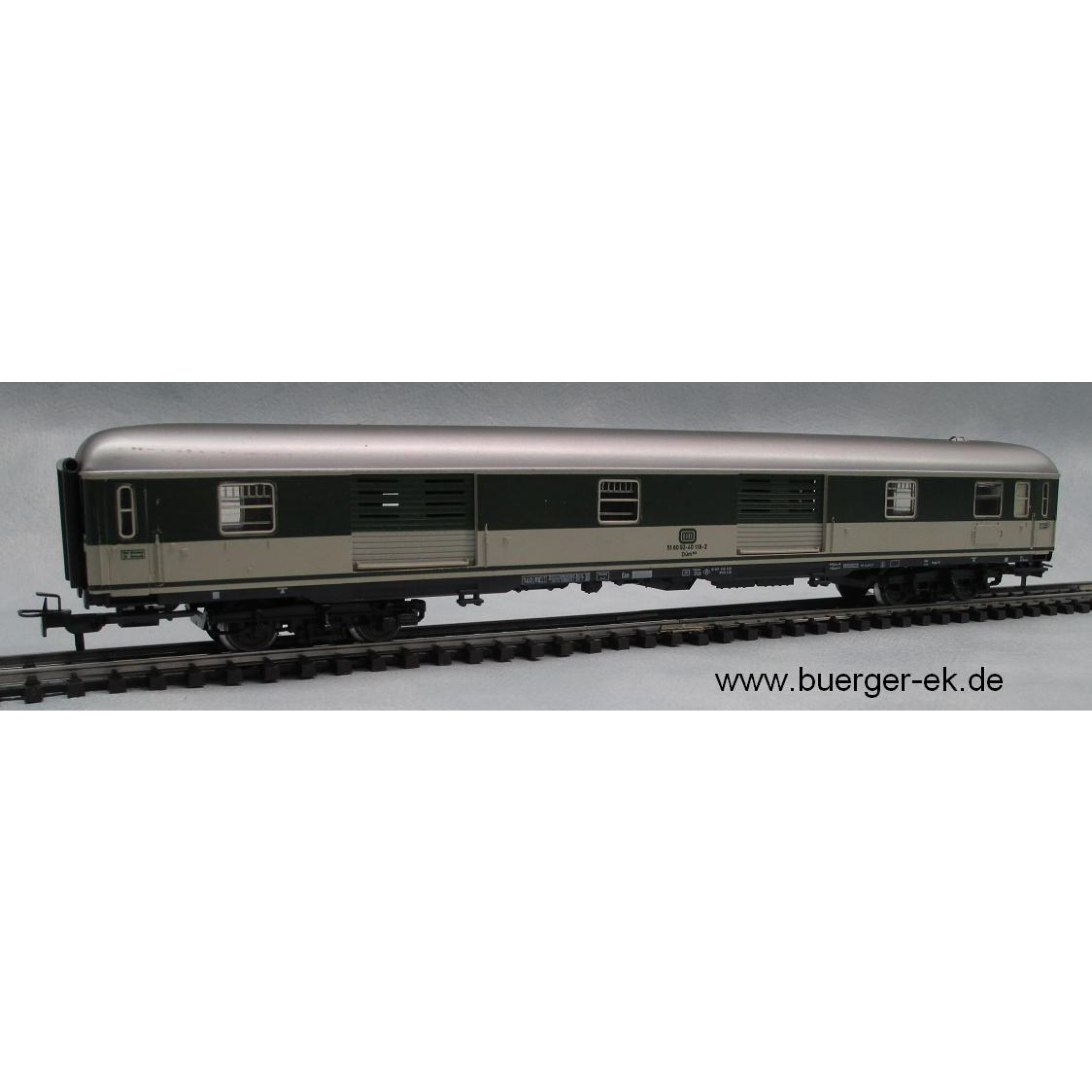 Schnellzug-Gepäckwagen der DB, grün/beige, 4achsig, Blechdrehgestelle mit Sprengringen, Zustand 2, ohne Originalkarton,