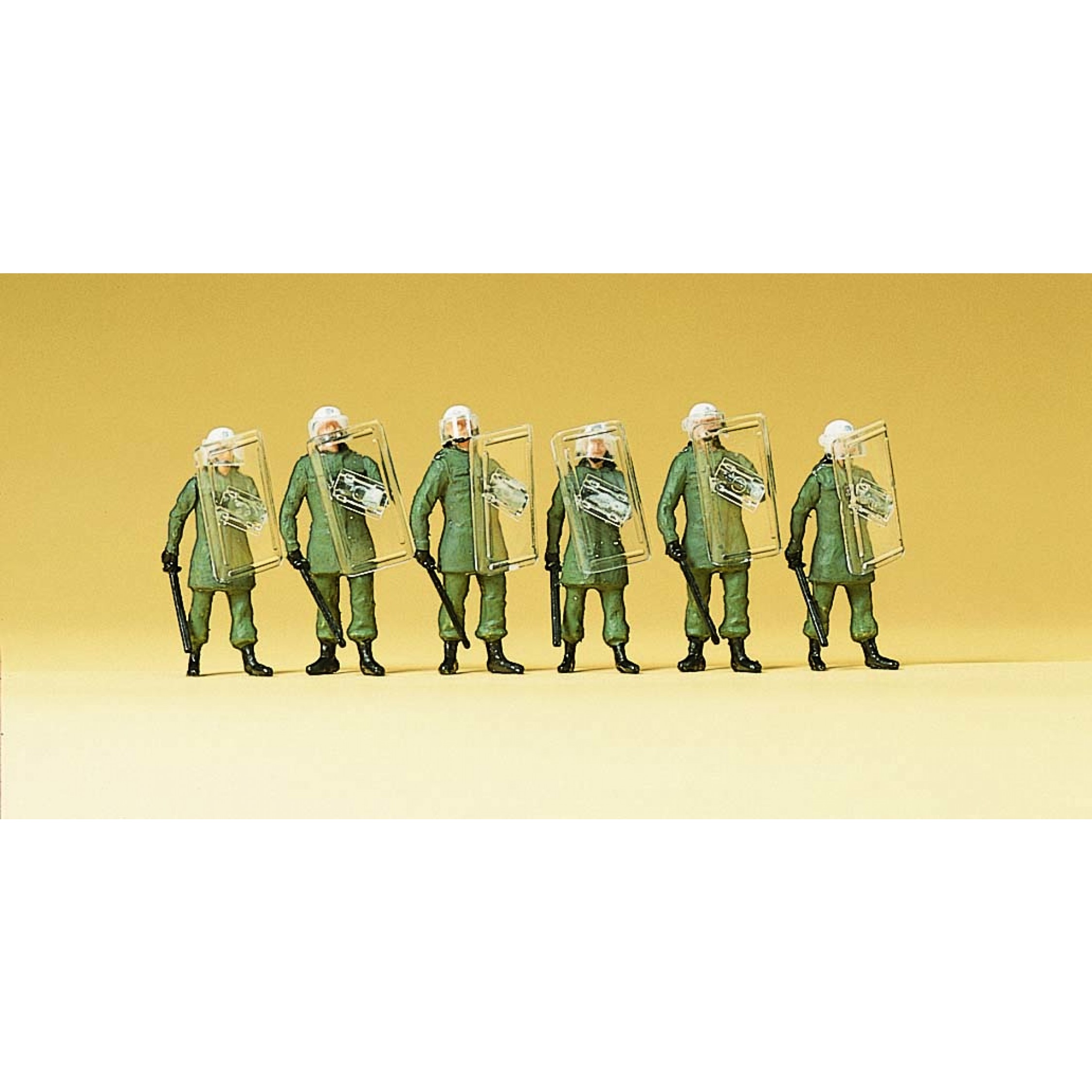 BGS-Beamte im Einsatzanzug / Schutzhelm, in Abwehrstellung