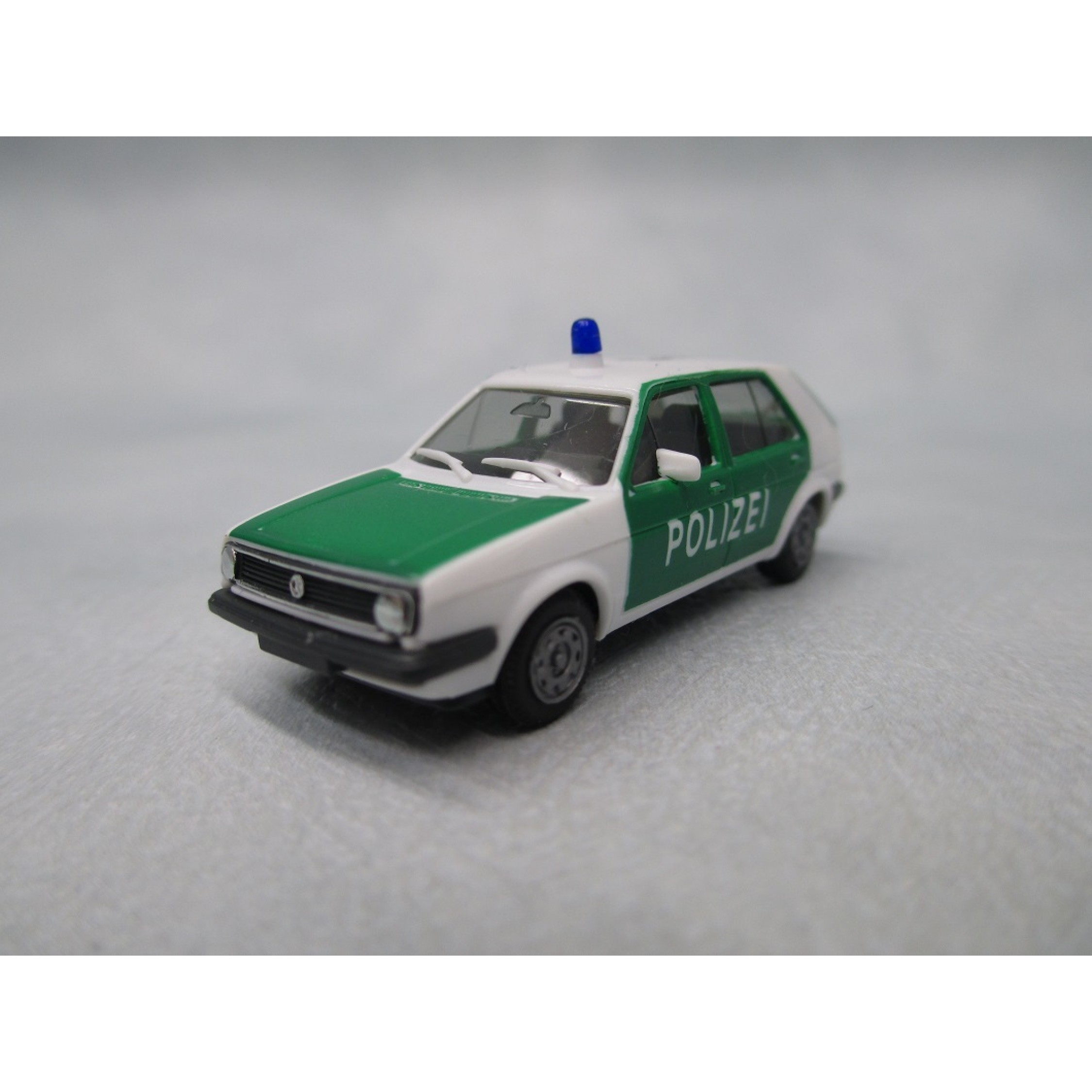 VW Golf der POLIZEI, grün/weiß, Einzelblaulicht, Dachdruck "110"