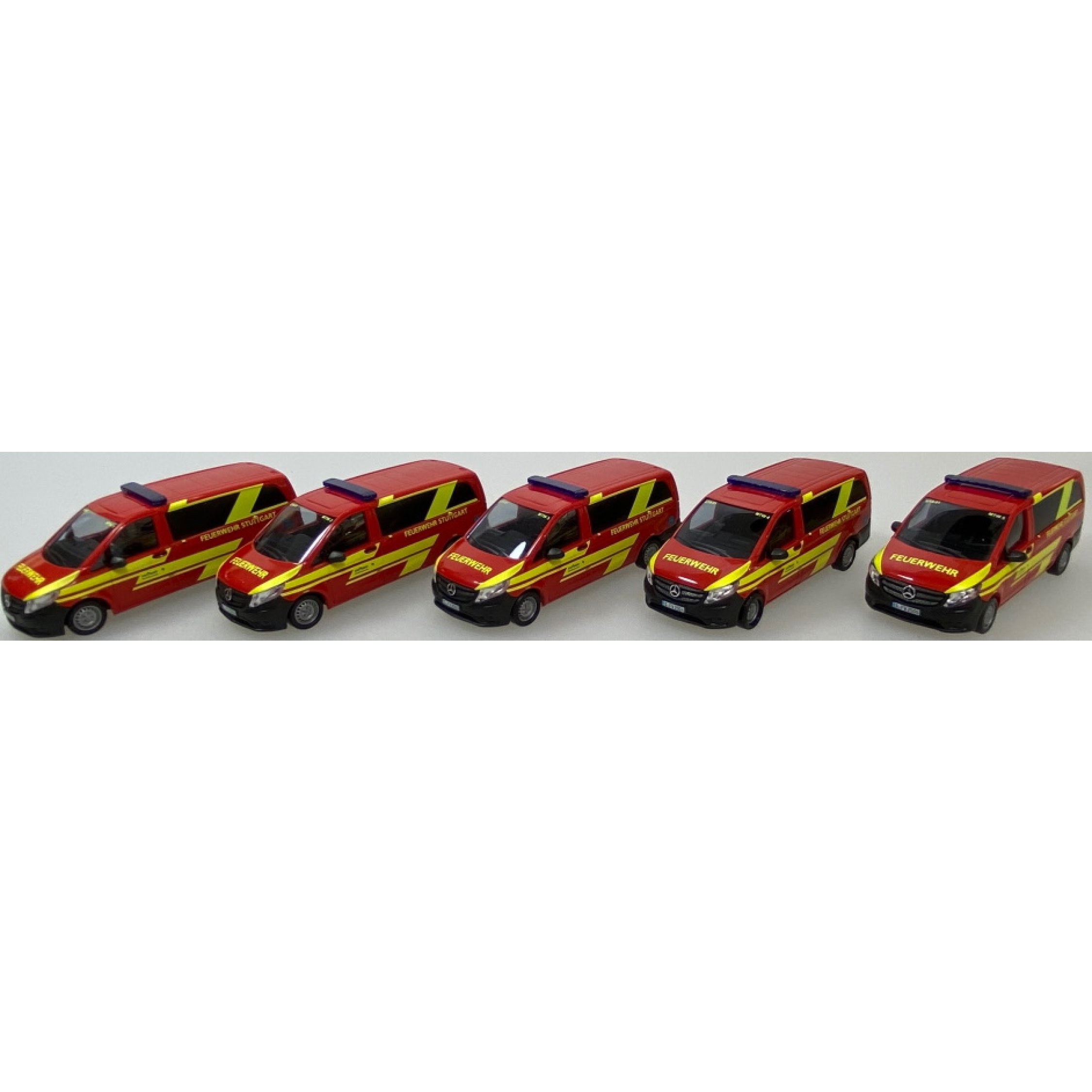 Set 5 Mercedes Vito FEUERWEHR STUTTGART: MTW 1/19-01 S-FW2501, MTW 2/19-01 S-FW2502, MTW 3/19-01 S-FW2503, MTW 4/19-01 S-FW2504, MTW 5/19-01 S-FW2505