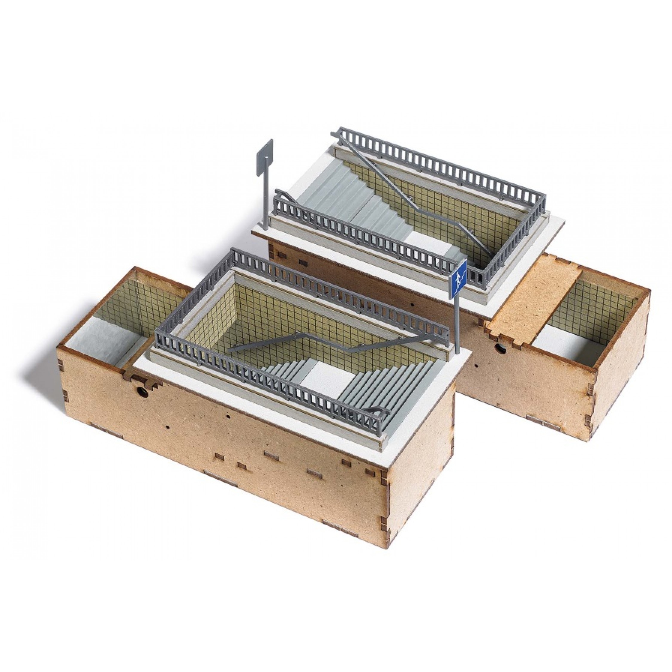 Fußgängerunterführungen, Bausatz für 2 Fußgängerunterführungen, Größen Straßenebene 8,7 x 5,3 cm, Treppenabgang 11,7 x 4,4 cm, Einbautiefe 4 cm