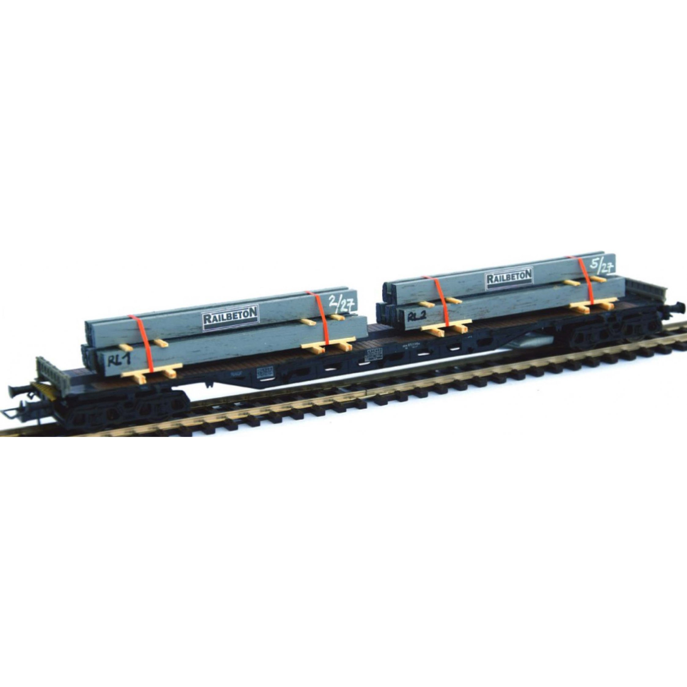 4. Ladegut Beton-Seilzugschächte RAILBETON auf Transporthölzern gelagert mit Spannbändern gesichert, Länge ca. 2 x 9 cm