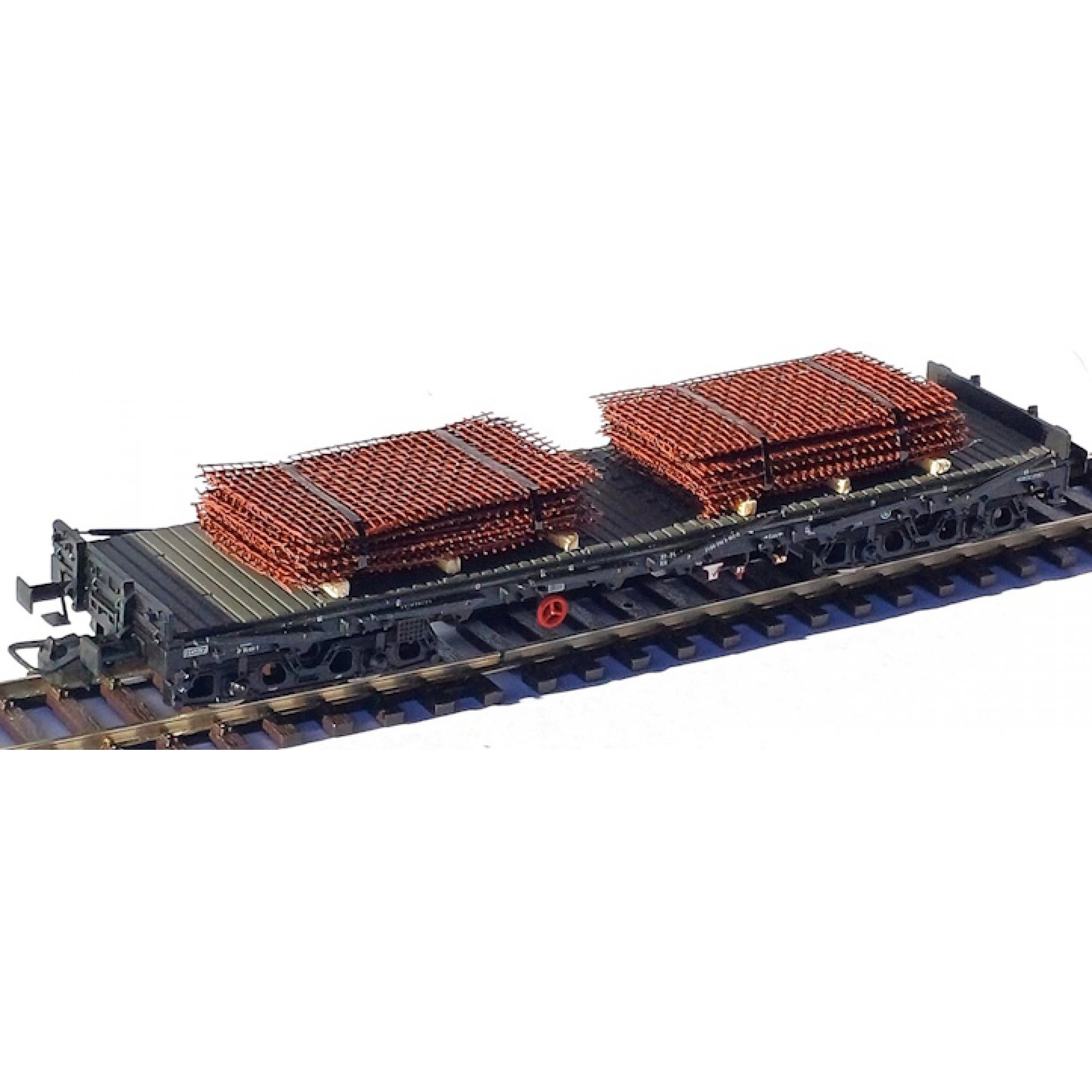 4. Ladegut gebündelte Baustahlmatten auf Transporthölzern gelagert und mit Spannbändern gesichert, Länge ca. 2 x 45 mm