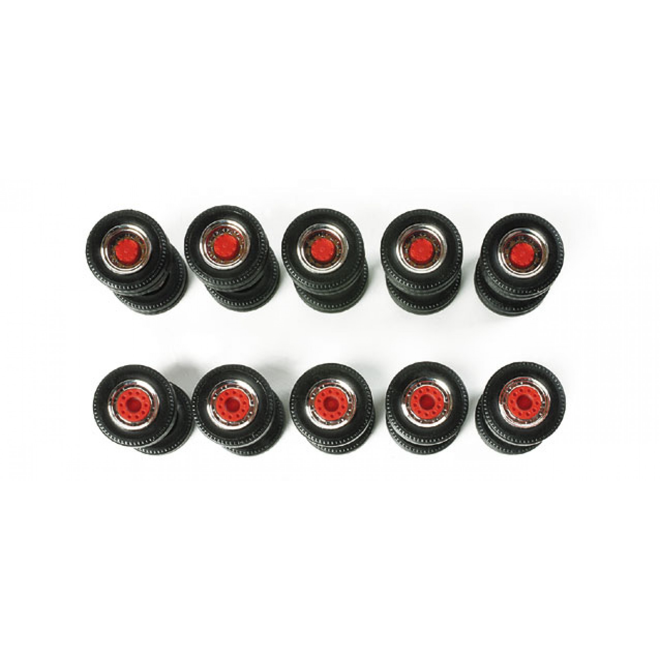 Lenk- und Zwillingsreifen Zugmaschinen (chrom/rot, 5 Sätze)
