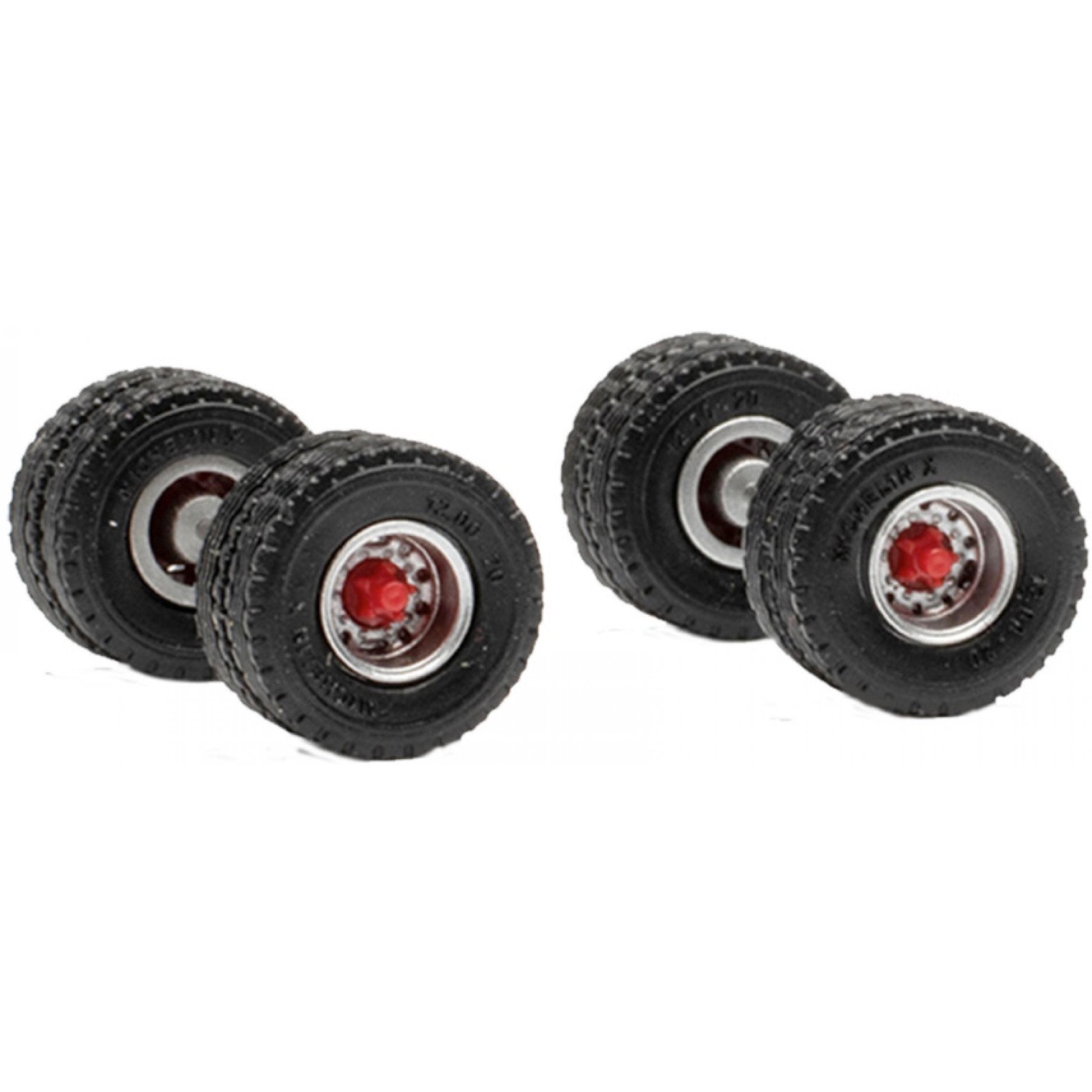 Radsatz Straßenreifen 12.00 x 20 mit Stahlfelgen Zwillingsbereifung für Anhänger, Inhalt 2 Achsen