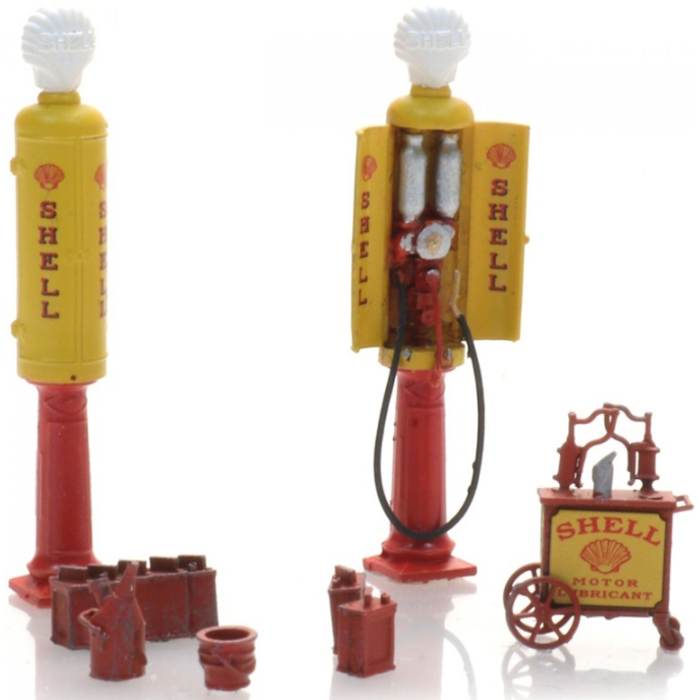 Satz mit hisorischen Tankzapfsäulen, Shell