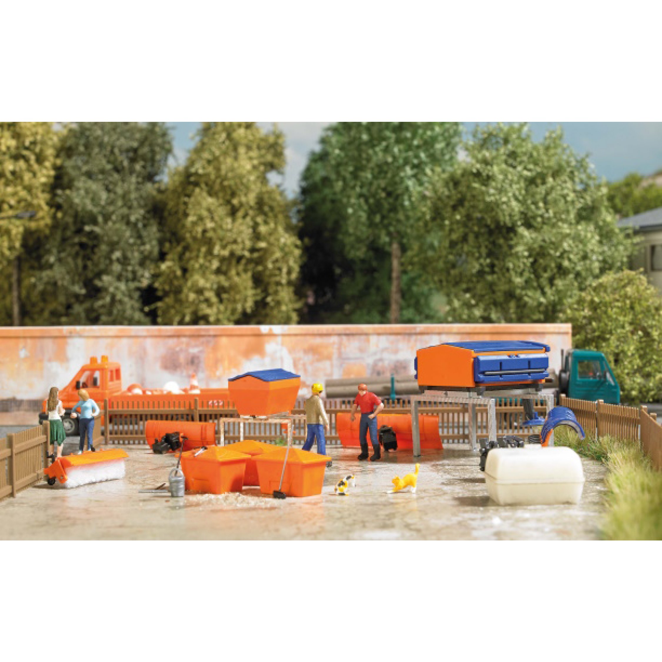 4. Straßenmeisterei Ausgestaltungs-Set: Wasserfass, Streuaufsatz, Salzstreuer, Streugutkisten, Schiebeschild, Schneeschieber, Kehrwalze Werkzeuge Bausatz