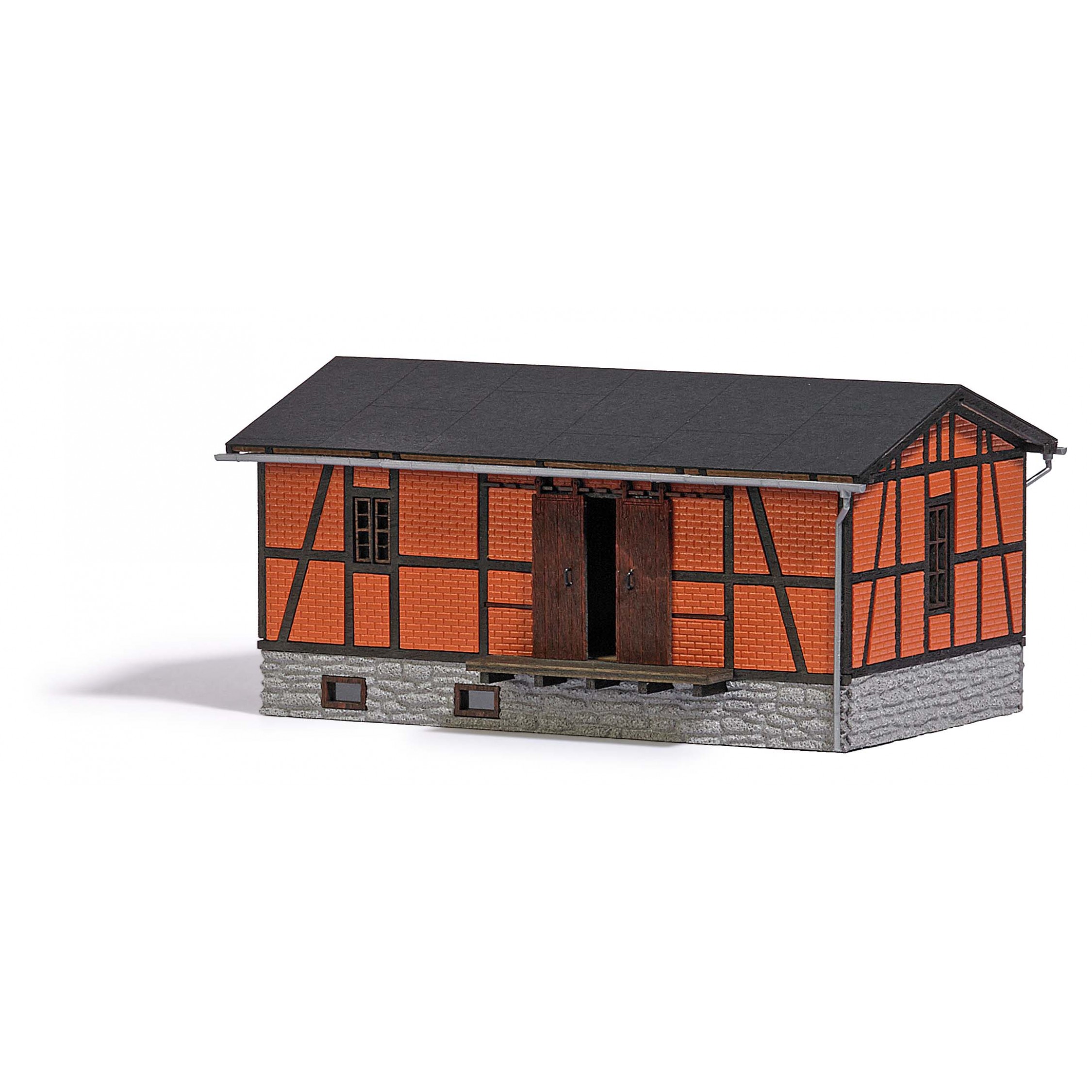 Verladeschuppen, Fachwerkbauweise mit Ziegelmauerwerk, Bausatz, 11,3 x 7,6 x 5,4 cm