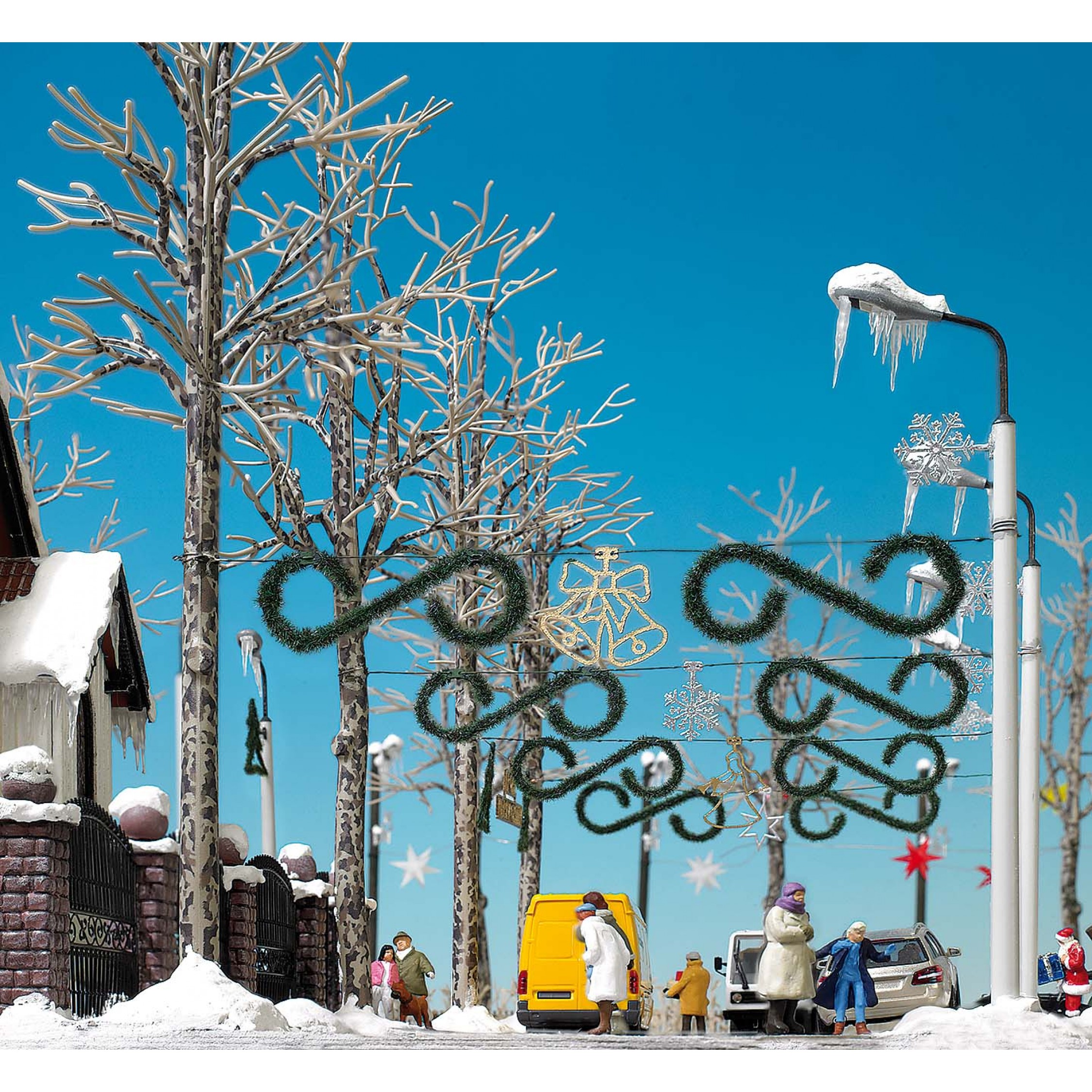 4. Weihnachtsschmuck, Det mit 8 Tannengirlanden, 4 silberne Schneeflocken und 2 Sternen, 2 Goldengel, 4 goldene Glocken, 2 goldene Schriften