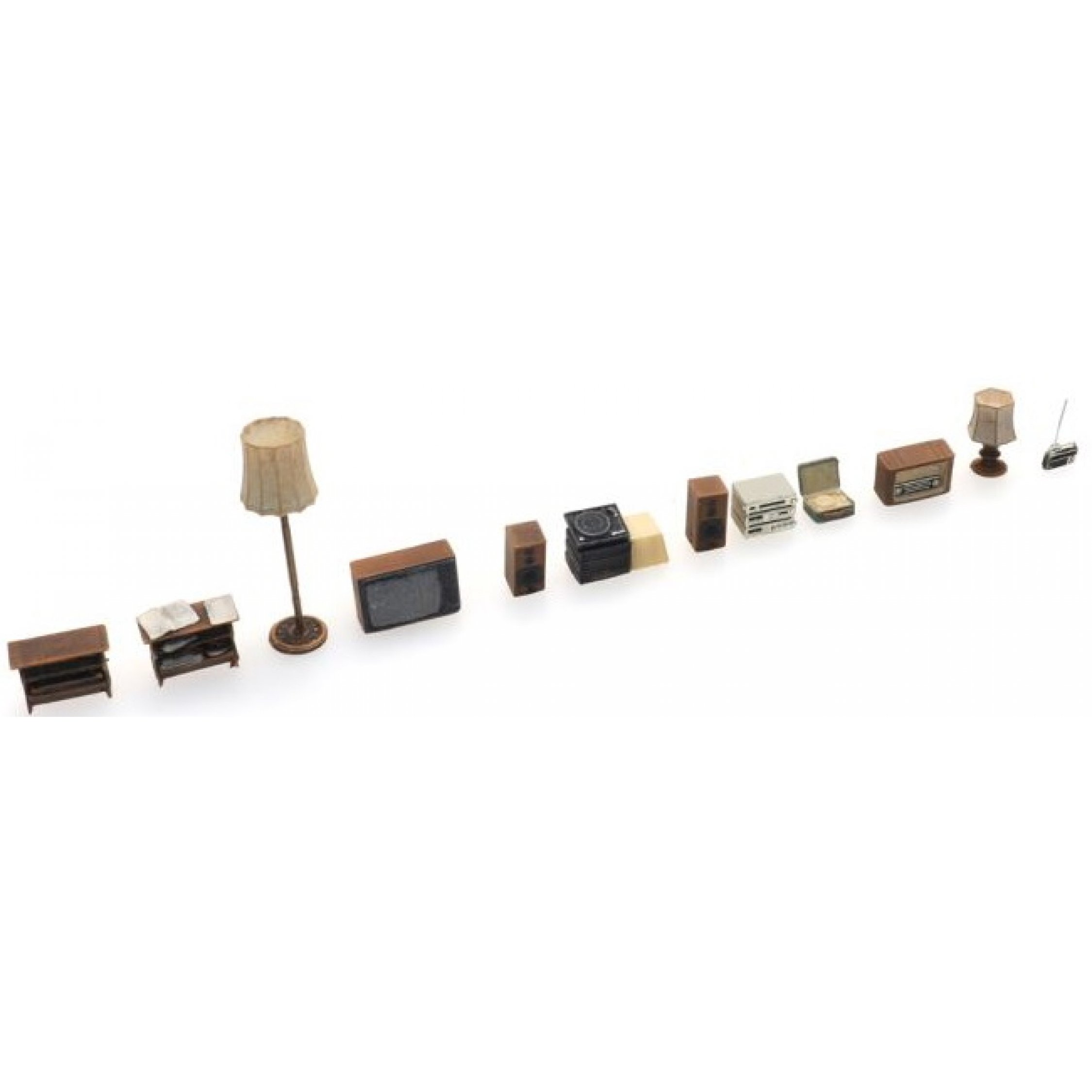 Wohnzimmerausstattung: Lampen, Fernseher, Radio