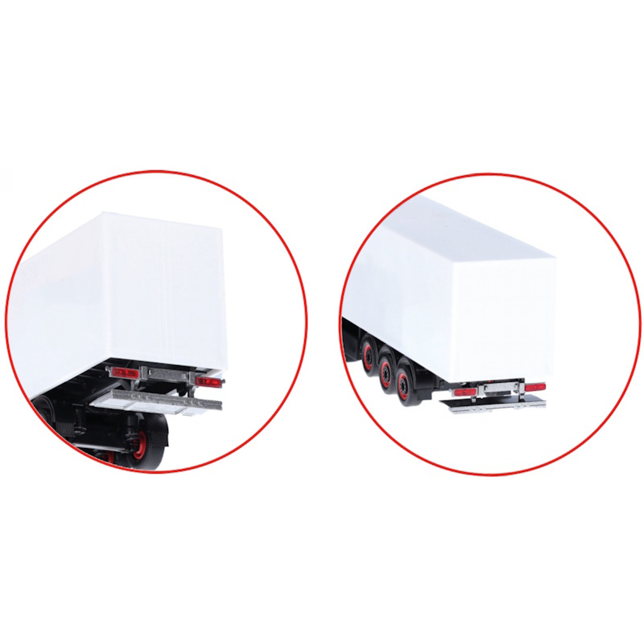 4. Zubehör Heckladebordwand für Auflieger, je 2x weiß & silber, gefaltet inklusive Fahrgestellrahmen
