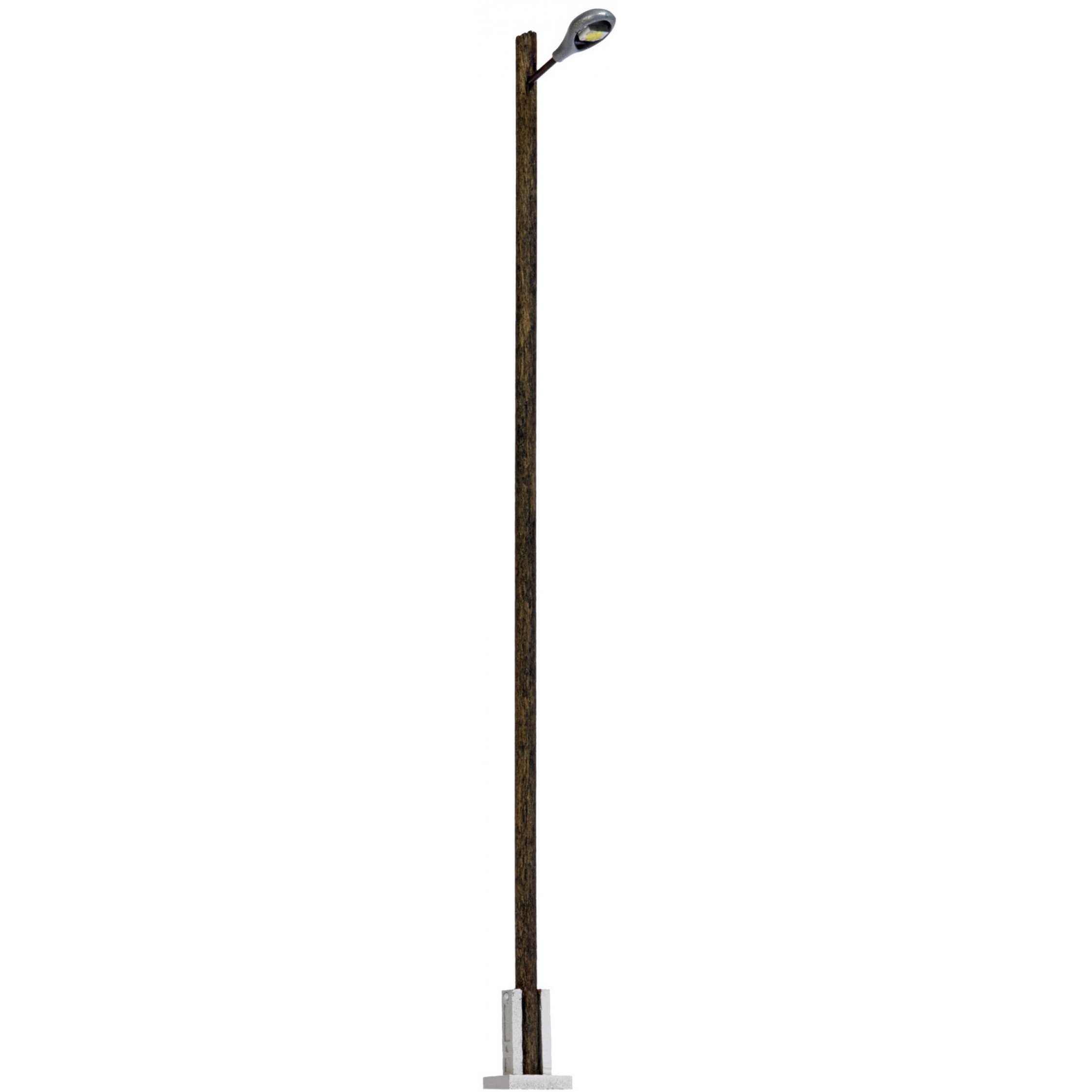 3. Bahnhofsleuchte, weß, oval, Leuchte mit Holzmast, Fertigmodell